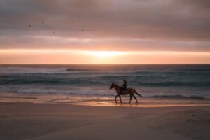 هنا، حيث تلتقي زرقة البحر بامتداد السماء، ستعيشون تجربة راقية تمنحكم إحساسًا فريدًا بالحرّية والصفاء، وأنتم تتقدّمون بخطى الخيل فوق الرمال الذهبية وعلى طول الشاطئ الممتد